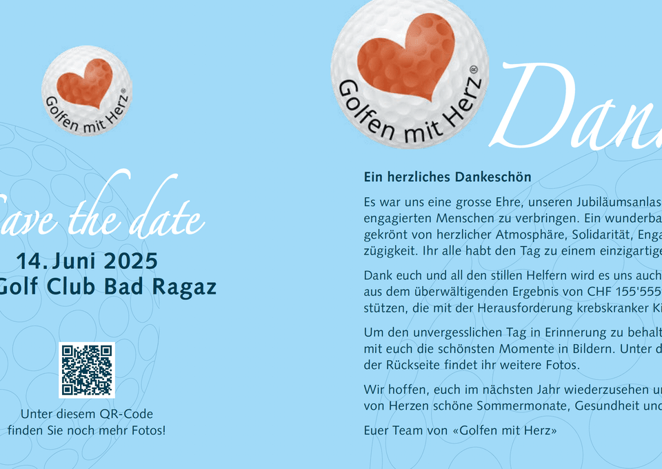 Am 14. Juli 2024 fand das 20. Golfturnier von Golfen mit Herz im GC Dolomitengolf in Osttirol statt. Bei schönem Wetter und guter Stimmung wurden 53'000 Euro gesammelt. Ein herzliches Dankeschön an alle Teilnehmer und Spender!